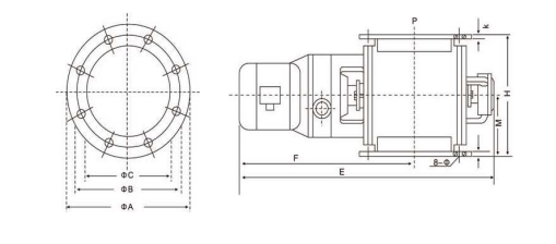 | 型號(hào) | ΦA(chǔ) | ΦB | ΦC | E | F | M | H | h | Φ |