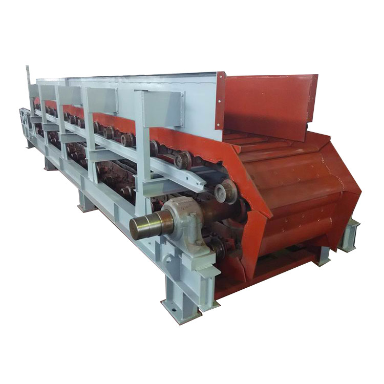 重型板式喂料機(jī)由電動機(jī)作動力,經(jīng)過減速機(jī)、主動鏈 輪裝置,帶動鏈板裝置作連續(xù)均勾的低速運(yùn)動,達(dá)到運(yùn)送物料均勻喂料的目的。