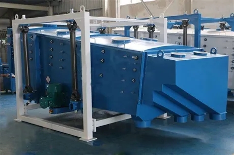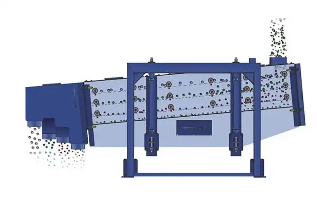FYBS方形搖擺篩的工作原理為:篩機啟動后,篩機搖動體即篩箱在慣性力的作用下作前后往復運動,篩箱帶動篩面作周期性搖動,從而使篩面上的物料隨篩箱一同作定向跳躍式運動,期間,小于篩面孔徑的物料通過篩落到下層,成為篩下物,大于篩面孔徑的物料經(jīng) 連續(xù)翻滾跳躍運動后從排料口排出,*終完成篩分工作。