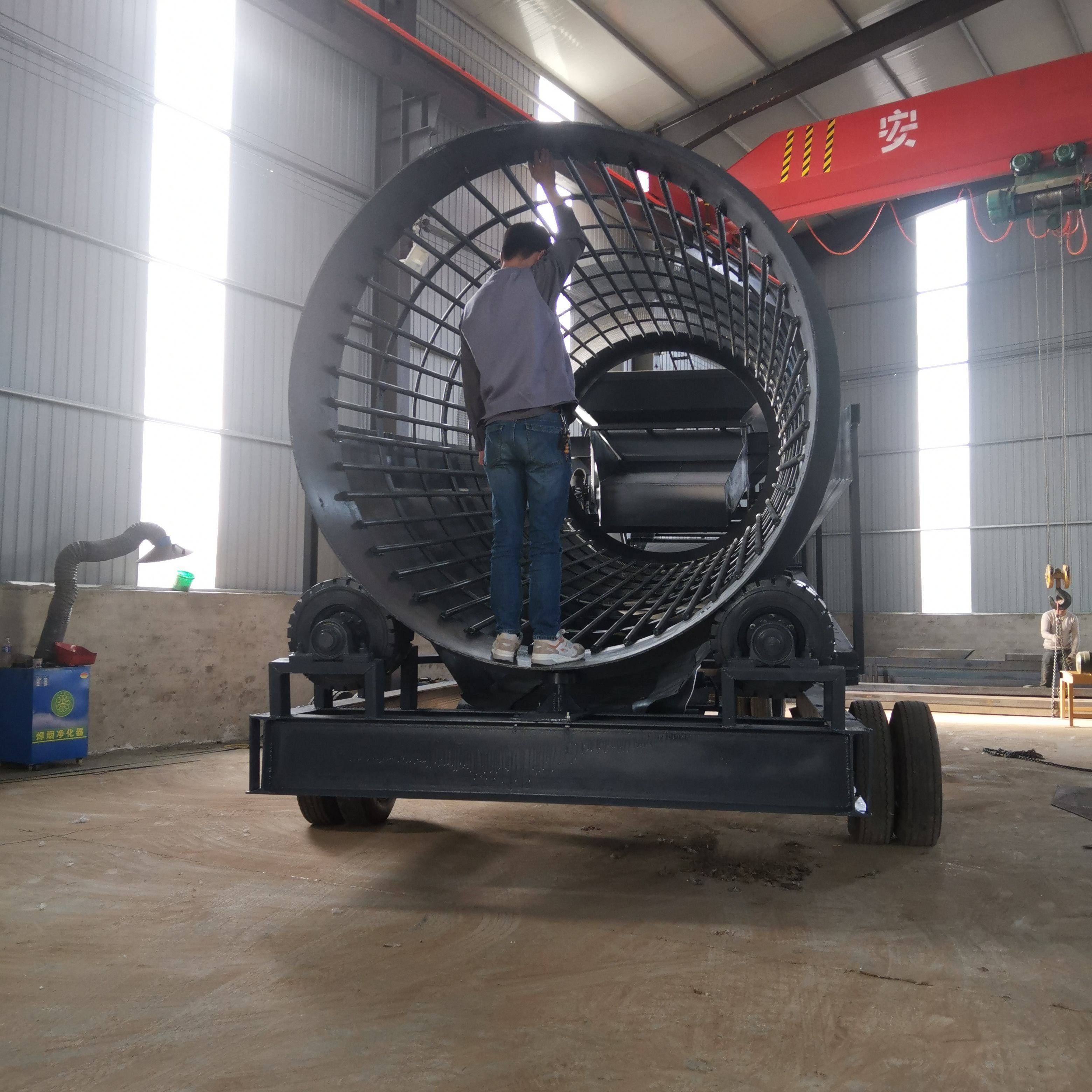 一、可以在滾筒篩分機的固定機架上再加一個裝置,然后由這個裝置旋轉(zhuǎn)帶動裝在它上面的皮帶不斷抽打篩孔的表面,以此抽打出堵塞在篩孔里面的原料顆粒。